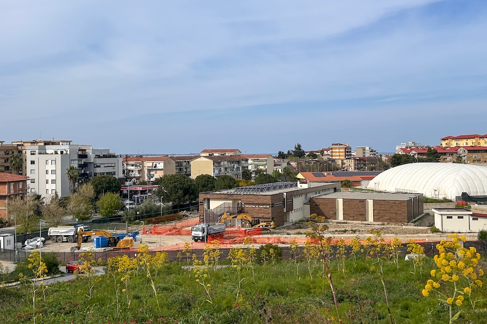 Lavori di bonifica in una scuola costruita con le scorie industriali, a Crotone (Angelo Mastrandrea/il Post)