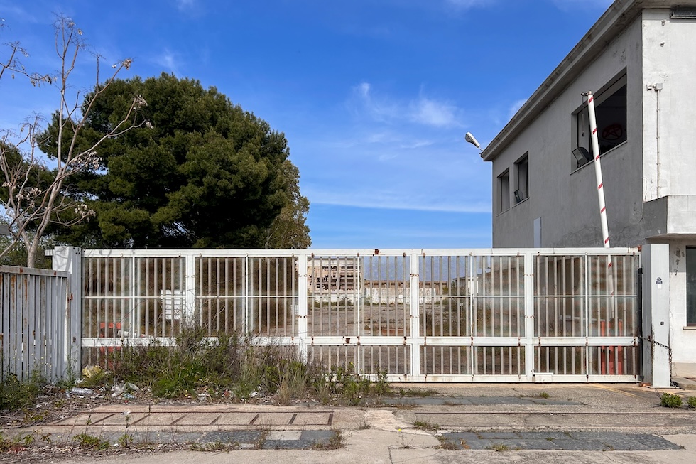 Il cancello d’ingresso dell’ex EniChem a Crotone (Angelo Mastrandrea/il Post)