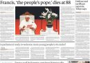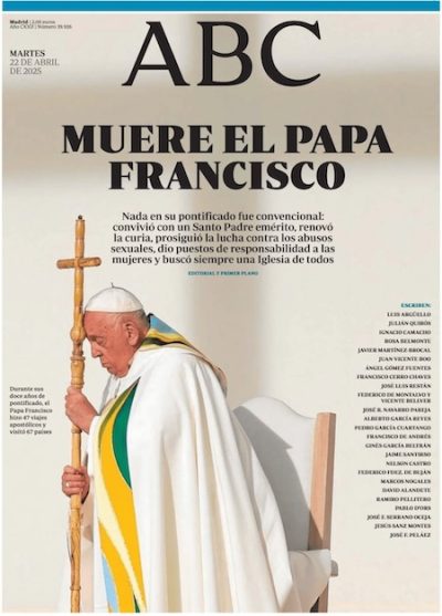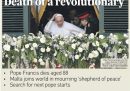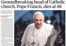 I giornali di tutto il mondo oggi hanno in prima pagina la morte di papa Francesco, avvenuta lunedì mattina. Sia nei paesi a maggioranza cristiana che in quelli dove le religioni più diffuse sono altre i giornali hanno dato grandissimo spazio alla morte del capo della Chiesa cattolica.
