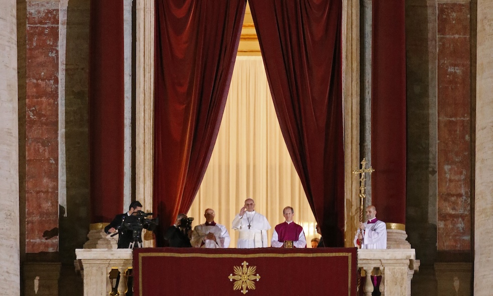 La prima apparizione di Jorge Mario Bergoglio come papa Francesco, dopo essere stato eletto, 13 marzo 2013 (REUTERS/Stefano Rellandini)