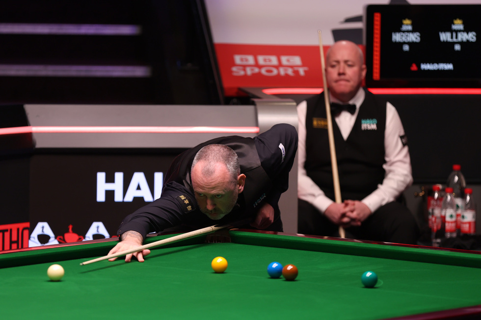 Il gallese Mark Williams e, sullo sfondo, lo scozzese John Higgins; entrambi cinquantenni, sono ancora tra i migliori giocatori al mondo (George Wood/Getty Images)
