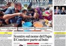 Il piano approvato dal gabinetto di sicurezza israeliano per occupare interamente la Striscia di Gaza è la notizia su cui aprono quasi tutti i giornali di oggi: il piano prevede un’occupazione permanente e protratta nel tempo e lo spostamento della popolazione palestinese nel sud della Striscia. Il Sole 24 Ore titola invece sul piano presentato dalla presidente della Commissione europea von der Leyen e dal presidente francese Macron per accogliere ricercatori nell’Unione Europea, il Giornale ipotizza un progetto del governo per aumentare gli stipendi ai giovani, e la Verità si occupa della valutazione dei servizi segreti interni tedeschi che ha indicato il partito di estrema destra AfD come un pericolo per la democrazia.