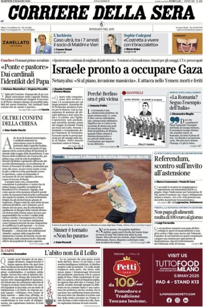 Il piano di Israele per occupare la Striscia di Gaza, le ipotesi sul nuovo papa, e il ritorno di Sinner dopo la squalifica
