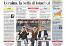 Quasi tutti i giornali di oggi si occupano in apertura del parziale fallimento dell’incontro in programma ieri in Turchia fra Russia e Ucraina per iniziare una trattativa per arrivare alla pace fra i due paesi: dopo la rinuncia a partecipare del presidente russo Putin anche quello ucraino Zelensky ha lasciato la Turchia, e l’incontro spostato a oggi si dovrebbe tenere fra due delegazioni di livello più basso. Il Manifesto e l’Osservatore Romano seguono invece le notizie sui bombardamenti israeliani sulla Striscia di Gaza, il Fatto ipotizza riforme elettorali, la Verità si occupa dei finanziamenti ministeriali al cinema, e Libero titola sulle nuove indagini sulla morte di Chiara Poggi a Garlasco.