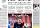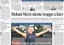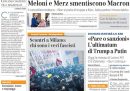 Le prime pagine di domenica danno spazio ad alcuni eventi delle guerre in corso, l’espansione dell’occupazione di Israele nella Striscia di Gaza e gli ultimi attacchi della Russia contro l’Ucraina, e ai relativi negoziati. Molti però dedicano l’apertura alle grandi polemiche contro il Remigration Summit, il raduno xenofobo dell’estrema destra europea che si è tenuto ieri a Gallarate. O al battibecco tra il presidente francese Emmanuel Macron e la presidente del Consiglio italiana Giorgia Meloni sulle motivazioni per cui l’Italia è stata esclusa da alcuni colloqui sulla guerra in Ucraina. Diversi giornali danno poi risalto anche alla prima messa di papa Leone XIV nella basilica di San Pietro, oggi, e alla vittoria della tennista Jasmine Paolini agli Internazionali di Roma, che l’Italia non vinceva da quarant’anni.