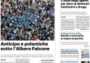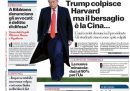 La nuova minaccia del presidente degli Stati Uniti Trump di imporre dazi al 50 per cento sulle importazioni dall’Unione Europea a partire dal primo giugno e la reazione negativa delle borse europee sono la notizia su cui aprono tutti i giornali di oggi. Fanno eccezione il Manifesto e Avvenire, che si occupano della drammatica situazione nella Striscia di Gaza per le restrizioni israeliane all’arrivo dei camion con cibo e medicinali, il Fatto e la Verità, che tornano a criticare il piano di riarmo dell’Unione Europea, e Libero, che segue le nuove indagini per l’omicidio di Chiara Poggi nel 2007. Sui giornali sportivi, ma anche su quasi tutte le prime pagine, si commenta con grandi foto dei festeggiamenti la vittoria dello scudetto della Serie A maschile di calcio del Napoli.