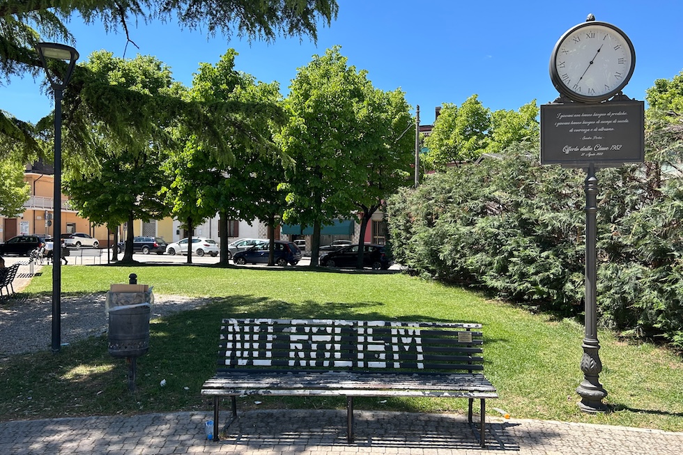 La piazza di Trasacco, uno dei comuni della piana del Fucino (Angelo Mastrandrea/il Post)