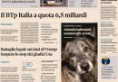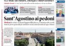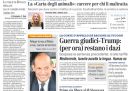 La vicenda giudiziaria relativa ai dazi decisi dal presidente degli Stati Uniti Trump è la notizia principale sulle prime pagine di oggi: dopo la decisione di un tribunale federale che mercoledì li aveva bloccati ieri un tribunale di appello li ha ripristinati in attesa della decisione nel merito. Avvenire e il Riformista aprono invece sulla proposta degli Stati Uniti per arrivare a una tregua nella Striscia di Gaza, accettata da Israele ma respinta per il momento da Hamas, il Fatto critica il piano di riarmo europeo, Libero si occupa del processo alla ong Mediterranea per il soccorso delle persone migranti, e la Verità torna su un suo antico cavallo di battaglia, i vaccini contro il coronavirus.
