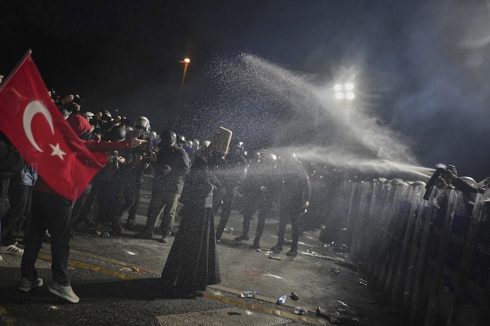 Proteste contro l’arresto di Ekrem Imamoglu a Istanbul, il 23 marzo 2025 (AP Photo/Francisco Seco)