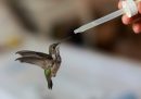 Tra gli animali fotografati questa settimana c’è un colibrì che viene nutrito con un contagocce nell’appartamento di una donna che da oltre dieci anni si prende cura di colibrì feriti o malati: ha trasformato la sua camera da letto in una sorta di clinica fai da te e cura fino a trecento colibrì all’anno, che rimette poi in libertà.