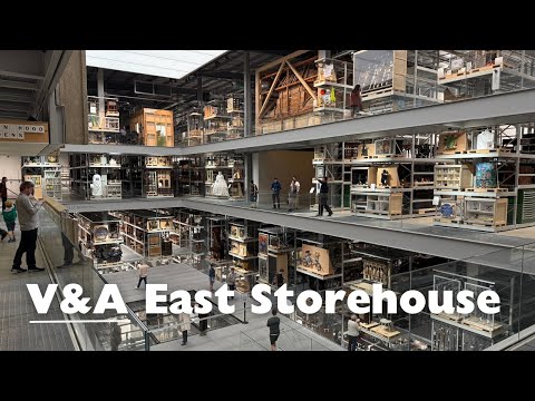 Il V&A East Storehouse contiene 250mila oggetti, 350mila libri e circa mille archivi. Subito dopo essere entrati nell’edificio ci si trova davanti alla scalinata che conduce allo spazio centrale, da cui si possono vedere i tre livelli espositivi, disposti a loro volta in cerchi concentrici: il più interno è liberamente accessibile, mentre quello esterno è riservato agli addetti ai lavori. Ai piani alti ci sono stanze dedicate allo studio e alla manutenzione delle opere, dotate però di finestre che permettono ai visitatori di vedere cosa succede dietro.