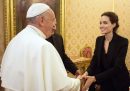 Lo scorso maggio, dopo quattordici anni dall’ultima volta, Angelina Jolie è tornata a sfilare sul red carpet del festival di Cannes come madrina del trofeo Chopard, rivolto ad artisti emergenti. In occasione di quella premiazione fece un discorso sull’importanza del cinema internazionale per creare «connessione ed empatia» tra i popoli, e citò le storie di Fatima Hassouna, fotoreporter uccisa a Gaza, di Shaden Gardood, cantante uccisa in Sudan, e della scrittrice e attivista Victoria Amelina, uccisa in Ucraina. Oggi Jolie ha cinquant’anni ed è da almeno venticinque che usa l’enorme fama guadagnata fin da giovane come attrice di Hollywood (anche perché figlia dell’attore Jon Voight e dell’attrice Marcheline Bertrand) per portare avanti cause e messaggi a scopo umanitario.