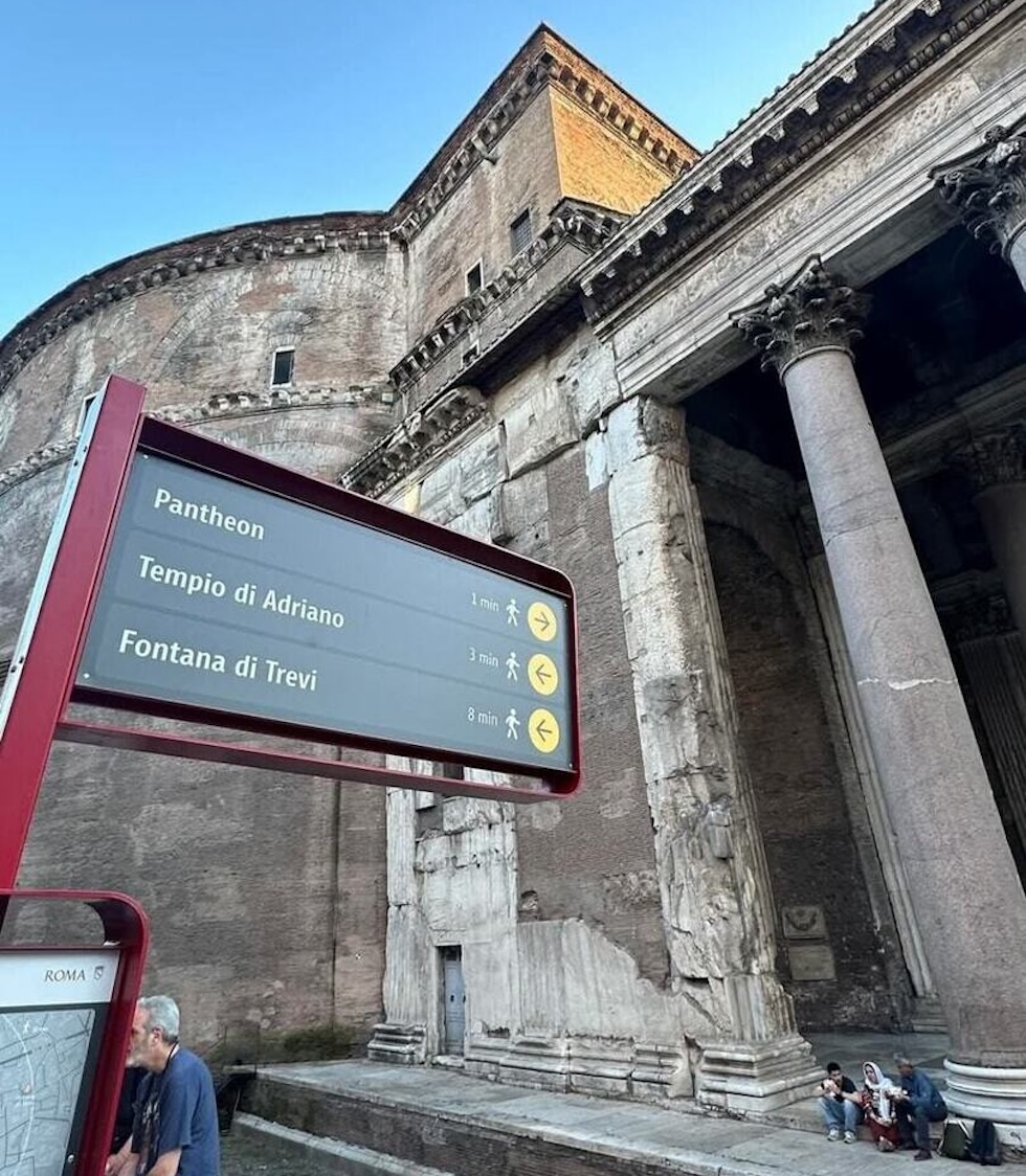 Il cartello che è stato rimosso martedì si trovava proprio davanti alle colonne del Pantheon, uno dei monumenti più frequentati della città: non solo disturbava molto la visuale ma diceva anche che il Pantheon era a un minuto di distanza, mentre l’edificio si trovava letteralmente a pochi passi. L’altro, tolto solo qualche giorno fa, era in piazza Navona, a disturbare la visuale della fontana del Bernini.