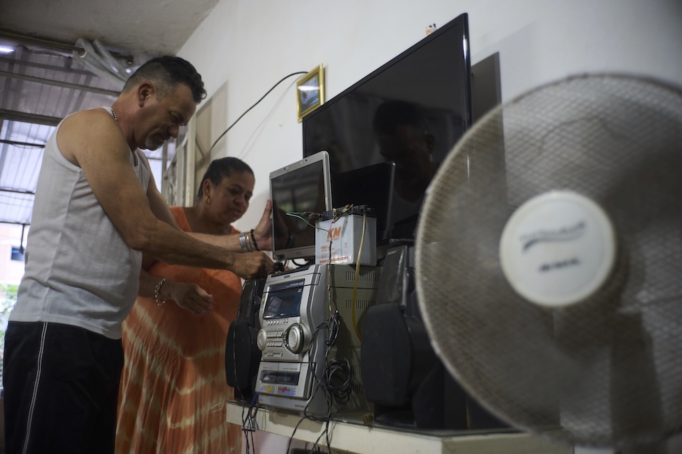 Una coppia cubana alle prese con problemi alla rete elettrica (AP Photo/Ramon Espinosa)