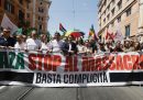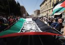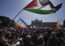 Sabato pomeriggio a Roma, in piazza san Giovanni, si è tenuta una grande manifestazione per chiedere la fine dell’invasione israeliana della Striscia di Gaza, iniziata quasi due anni fa, che ad oggi ha causato almeno 54mila morti. La manifestazione è stata indetta in maniera unitaria dai principali partiti di sinistra – fatto piuttosto raro, in Italia – a cui poi si sono unite moltissime associazioni. Secondo gli organizzatori in piazza c’erano almeno 300mila persone (come sempre, questi numeri vanno presi con prudenza).