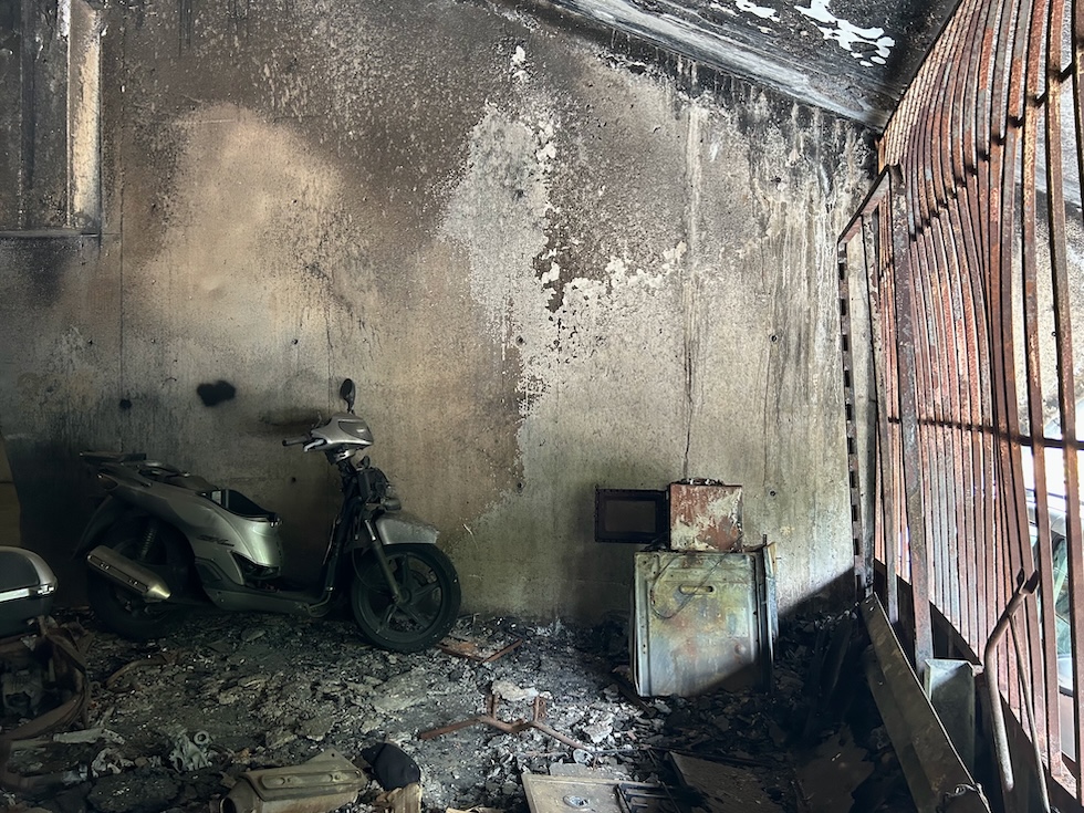 L’interno del garage bruciato la notte del 4 giugno al Corviale (Angelo Mastrandrea/il Post)