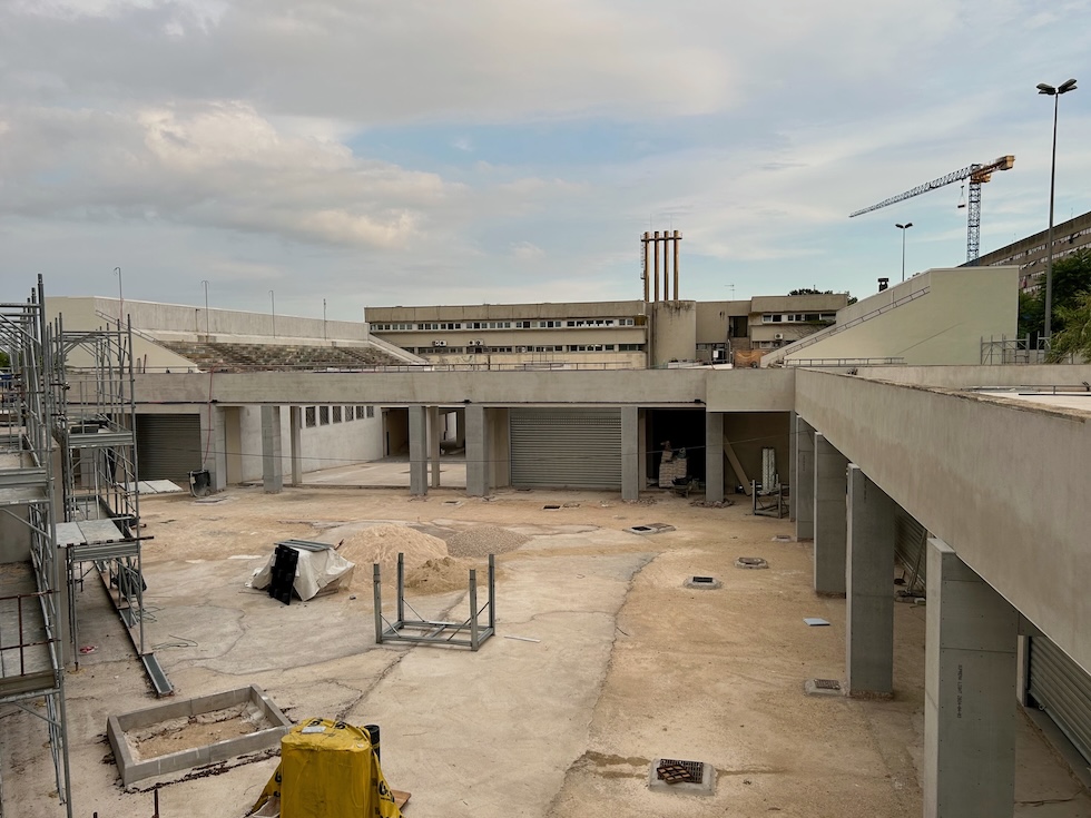 La piazza delle Arti e dell’Artigianato in costruzione al Corviale (Angelo Mastrandrea/il Post)