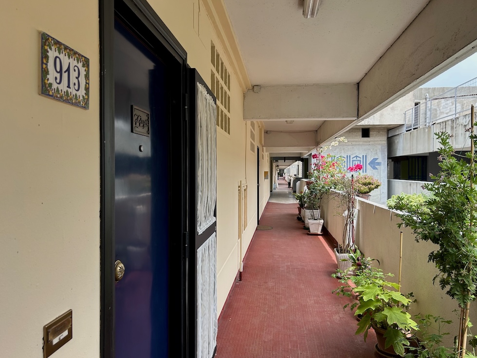 Nel seminterrato, la notte prima dell’arrivo di Gualtieri qualcuno ha bruciato un garage con alcune auto e motorini all’interno. Di fronte, a pochi metri, il pannello di controllo dell’illuminazione esterna del palazzo è incustodito. Alcuni abitanti raccontano che, ogni volta che avvengono traffici e movimenti di merci sospette, gli interruttori vengono spenti e gli spazi comuni del palazzo rimangono al buio anche per ore. Le scale che portano al piano interrato sono ostruite da materassi, mobili sventrati, cocci di bottiglia e altro materiale. Al quarto piano qualcuno ha sfondato la porta di un appartamento ristrutturato, murata per evitare che fosse occupato, e ci si è stabilito recintando anche il ballatoio con delle assi di legno. Al nono piano un gruppo di residenti ha abbellito i ballatoi con delle piante, e ha ridipinto alcune aree comuni vicino a una parete in vetrocemento, che sembra sul punto di crollare da un momento all’altro.
