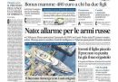 La maggior parte dei giornali di oggi si occupa in apertura della guerra fra Iran e Israele, con gli attacchi reciproci fra i due paesi e l’incontro di ieri a Ginevra fra il ministro degli Esteri iraniano, quelli di Francia, Germania e Regno Unito e l’Alta rappresentante per gli Affari esteri dell’Unione Europea. Il Manifesto e Libero aprono invece sulla manifestazione dei metalmeccanici a Bologna che ha occupato la tangenziale e sui rischi per i partecipanti in conseguenza delle norme contenute nel decreto “sicurezza”, il Giornale e la Verità titolano sul tax credit assegnato dallo Stato all’uomo indagato per la morte di una donna e una bambina trovate a Villa Pamphili, a Roma, mentre qualche giornale si occupa della manifestazione contro il riarmo europeo in programma oggi a Roma.