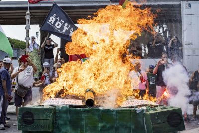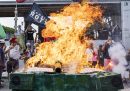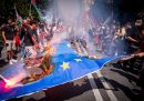 L’altra manifestazione si chiamava “Disarmiamoli” ed era organizzata dal sindacato Usb, dal piccolo partito di sinistra Potere al Popolo, dal movimento degli studenti palestinesi e dall’organizzazione Cambiare Rotta. Questa seconda manifestazione si poneva apertamente in contrapposizione alla prima. Gli organizzatori hanno detto che c’erano 30mila persone, la questura 5mila. La comunità palestinese ha partecipato a entrambe le manifestazioni.