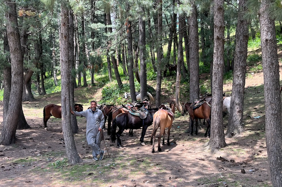 L’altra attrazione sono le passeggiate sui pony, che prima portavano i turisti in percorsi verso l’alta valle. A Pahalgam c’è un numero enorme di pony e conduttori di pony: 6.000 animali, secondo le stime, anche se quelli con licenza sono molti meno. Ora sono quasi tutti fermi sotto zone alberate: poca gente da portare, pochi posti dove andare. Abdul Khaliq Bhat dice che i pony qui ci sono da 40 anni, che lui nella vita ha «fatto solo quello» e che «comunque anche se non si lavora gli animali mangiano» e quindi le spese ci sono.