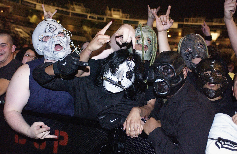 Fan della band metal Slipknot indossano maschere a un concerto a San José, in California, nel 2005 (Tim Mosenfelder/Getty Images)