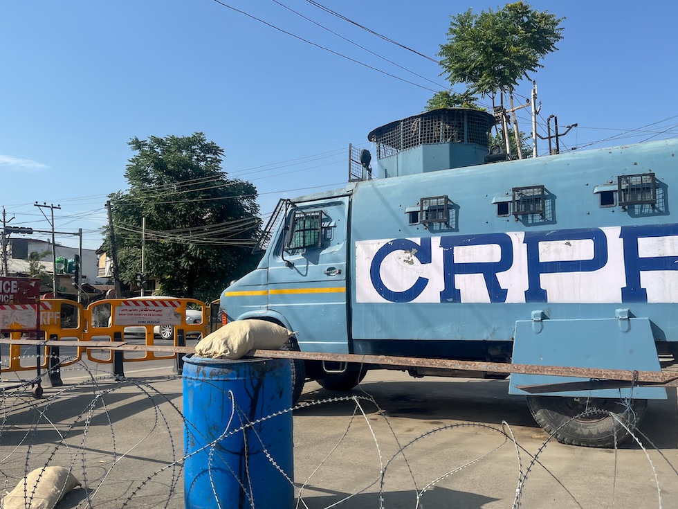 Una delle postazioni fisse delle varie forze di sicurezza a Srinagar (Valerio Clari/il Post)