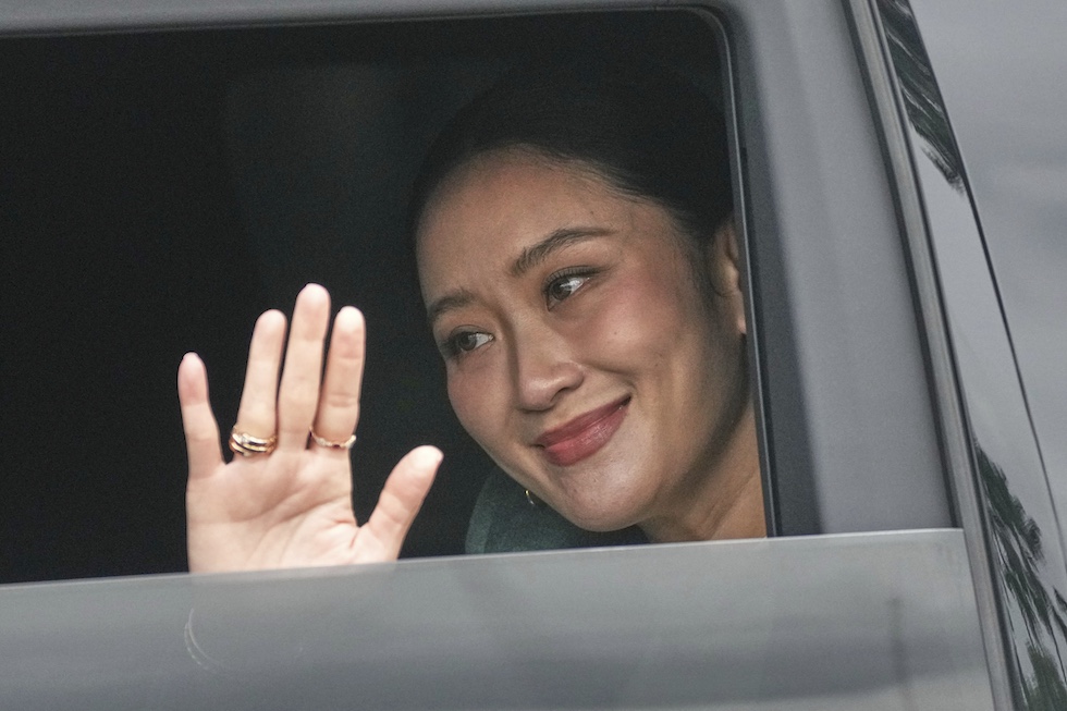 Paetongtarn Shinawatra lascia gli uffici del governo dopo la notizia della sospensione dall’incarico, il 1° luglio (AP Photo/Sakchai Lalit)