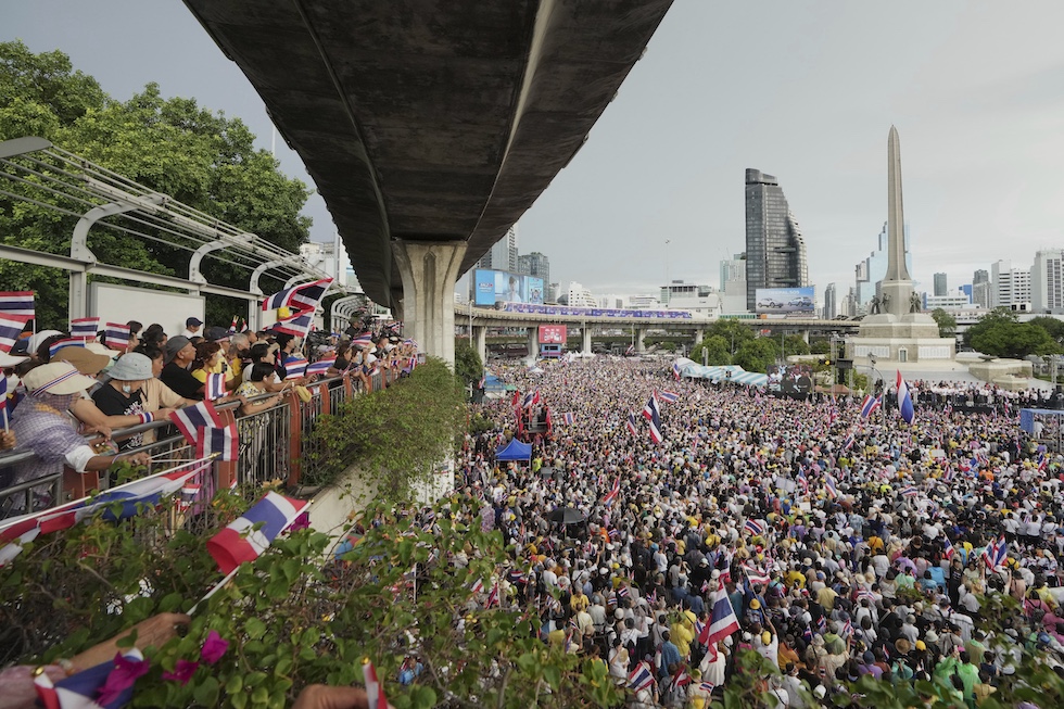 La protesta a Bangkok per chiedere le dimissioni di Paetongtarn Shinawatra, il 28 giugno (AP Photo/Sakchai Lalit)