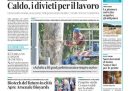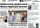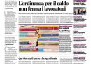 Il caldo che in questi giorni fa sentire i suoi effetti in Italia e in altri paesi europei è la notizia principale sulle prime pagine di oggi, con le morti di alcune persone e le misure per tutelare i lavoratori più esposti, mentre per il Giornale, Libero e la Verità il problema vero non è il caldo ma le iniziative per ridurre le emissioni inquinanti. Altre notizie presenti su tutte le prime pagine sono la decisione degli Stati Uniti di sospendere l’invio di alcune armi all’Ucraina, l’incontro fra papa Leone XIV e la presidente del Consiglio Meloni, l’annuncio del ministro della Cultura Giuli di non voler partecipare alla premiazione del premio Strega, e la condanna di Sean “Diddy” Combs.