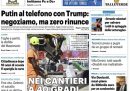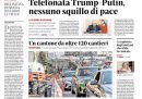 La telefonata fra il presidente degli Stati Uniti Trump e quello russo Putin per cercare di avviare negoziati per una tregua fra Russia e Ucraina è la notizia di apertura su tutte le prime pagine di oggi: Putin ha però ribadito di non voler rinunciare ai suoi obiettivi territoriali, pur dichiarandosi disponibile a una trattativa. La Verità critica invece le iniziative per la riduzione delle emissioni inquinanti, mentre Libero ipotizza iniziative del ministro della Cultura Giuli sull’organizzazione del premio Strega.