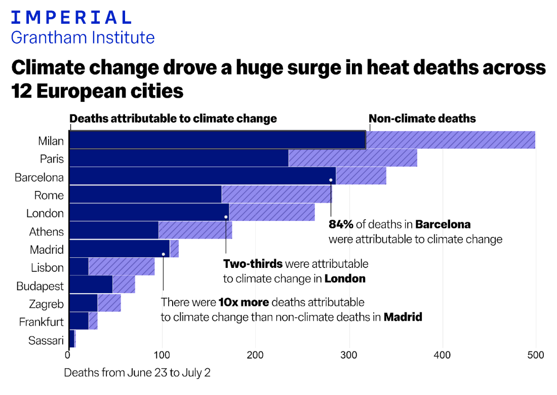 Un’analisi rapida ha stimato 2.300 morti in Europa e dice che 1.500 sono dovuti al riscaldamento globale: Milano è la città più interessata