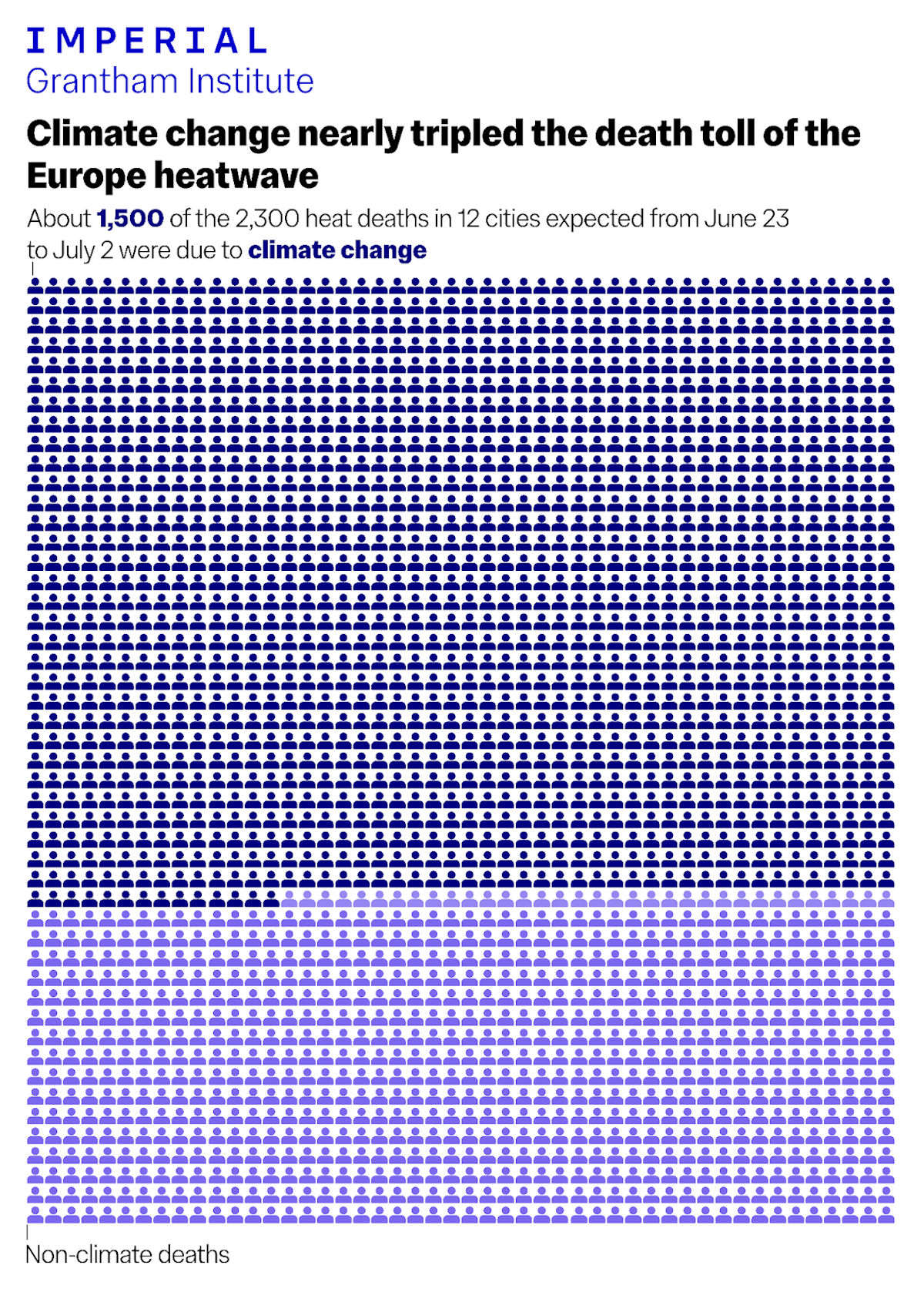 Un gruppo di ricerca internazionale ha diffuso i risultati di una prima analisi rapida sull’ondata di calore che ha interessato buona parte dell’Europa tra fine giugno e inizio luglio, stimando che il cambiamento climatico abbia triplicato la quantità di morti a causa del caldo. Milano e Roma sono tra le città più interessate, sempre secondo le stime della ricerca che è la prima di questo tipo a fornire un’analisi nel brevissimo termine sulle morti per un’ondata di calore grazie a un approccio statistico. Non è quindi basata sui dati delle morti effettive per calore, che saranno disponibili tra mesi e che probabilmente sottostimeranno il fenomeno, vista la difficoltà di ricondurre singoli decessi ai periodi di caldo anomalo.