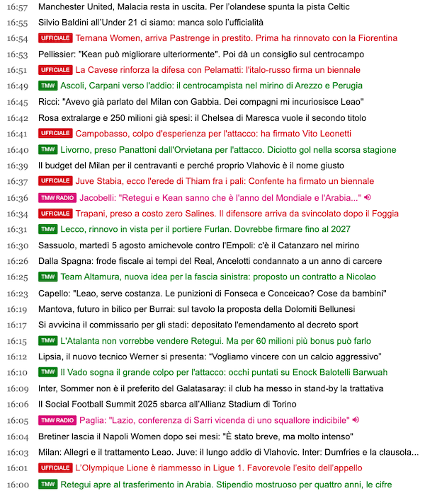 Accade in particolare a quei siti – come TuttoMercatoWeb o Calciomercato.com – che parlano solo, o quasi, di calciomercato e che quindi puntano molto sulla quantità, pubblicando centinaia di articoli al giorno per coprire più squadre possibile e per dare conto di ogni minimo aggiornamento nelle trattative.