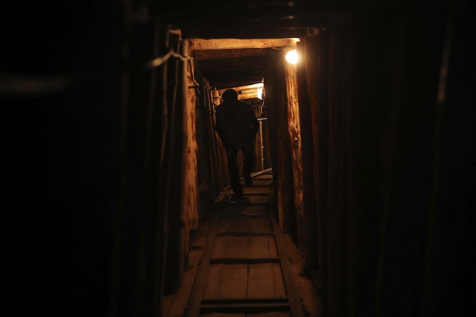 Un tunnel usato durante l’assedio di Sarajevo, in Bosnia, aprile 2022 (AP Photo/Armin Durgut)
