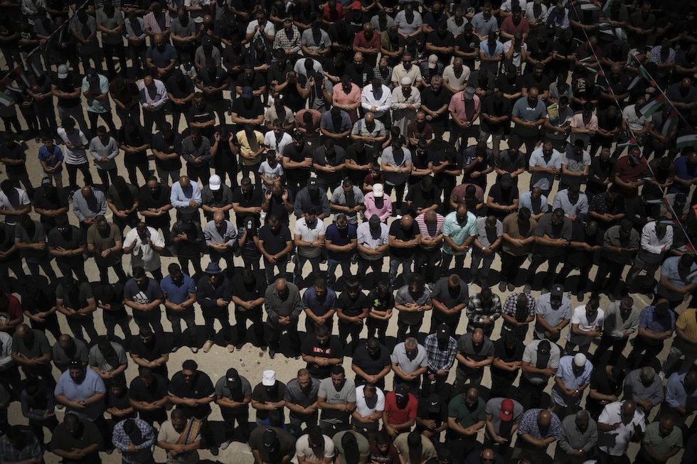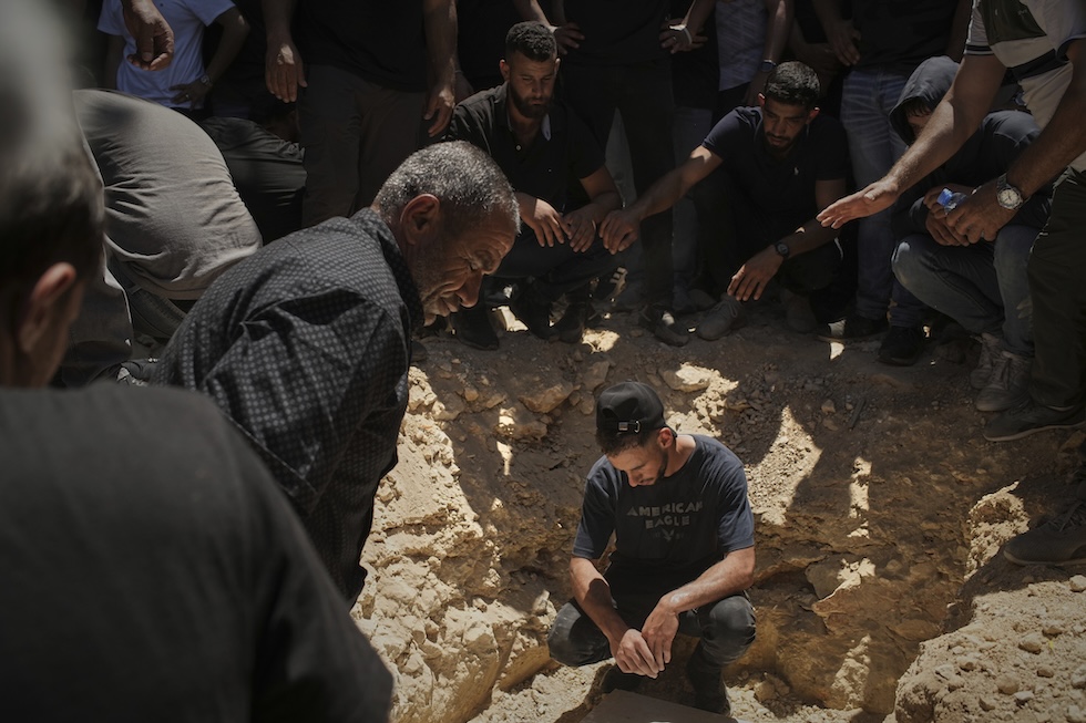 Il funerale di al Mazra’a Ash-Sharqiya, domenica 13 luglio (AP Photo/Leo Correa)
