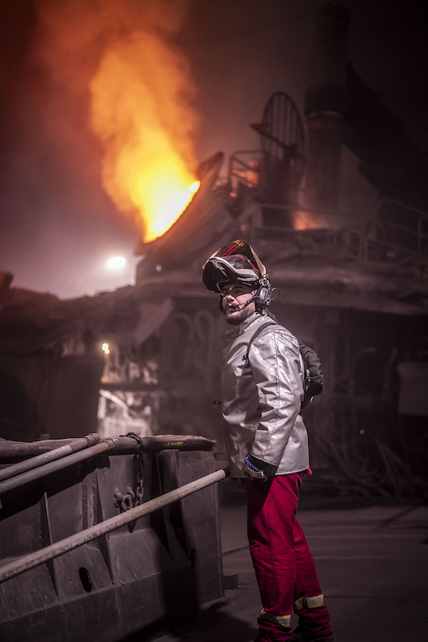 Un operaio al lavoro a un forno elettrico ad arco, nello stabilimento di Georgsmarienhütte, in Germania (ANSA-DPA)