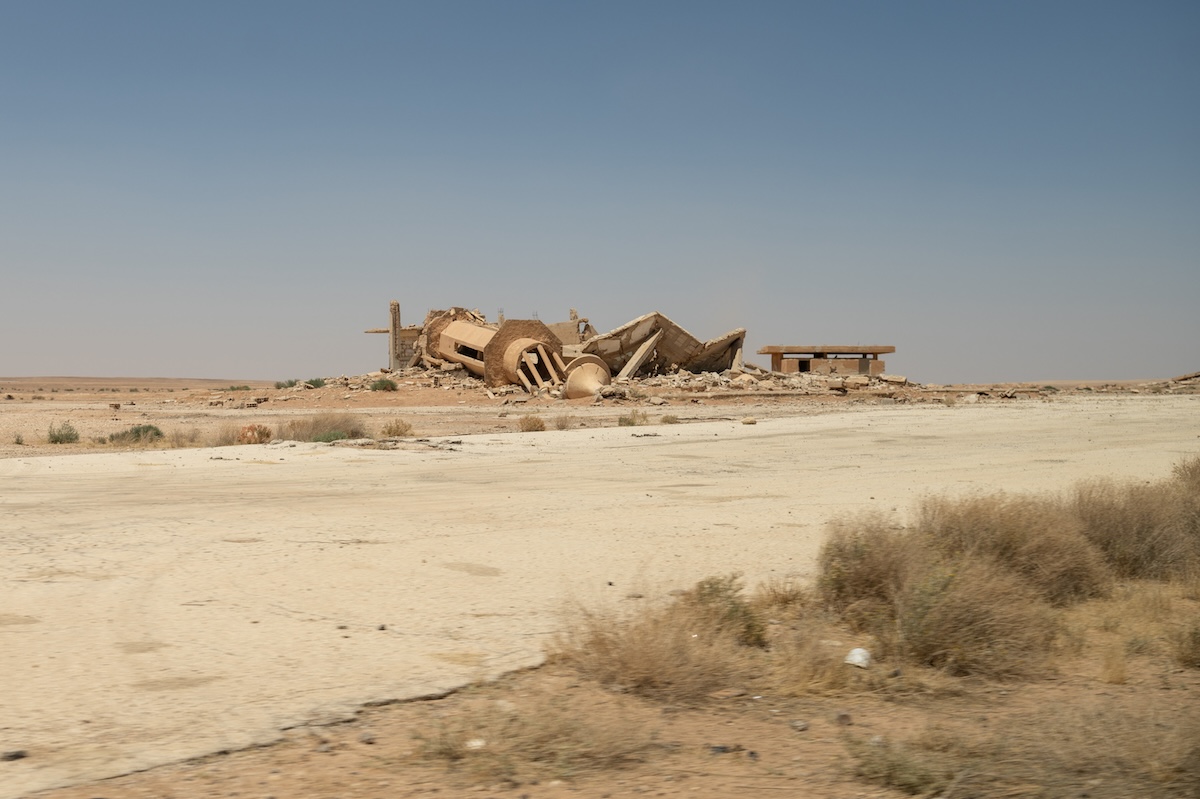 Attorno alla base non c’è niente. La capitale Damasco è lontana duecentocinquanta chilometri e nelle ultime due ore di viaggio in macchina si guida in un deserto senza suoni, senza umani e senza edifici. A volte ai lati della strada si vedono rovine appiattite. Erano case usate dallo Stato islamico, c’era anche una moschea, ma negli anni passati sono state centrate dalle bombe di precisione sganciate dagli aerei americani e non esistono più.