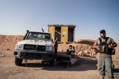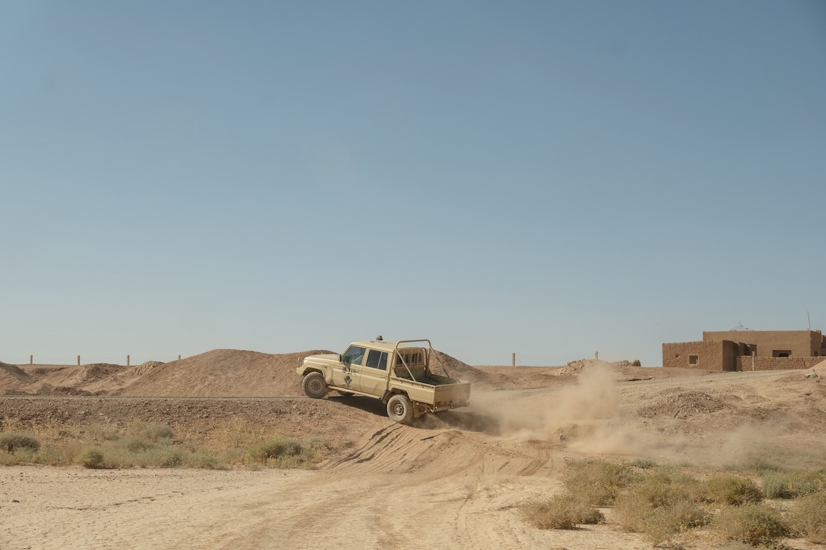 A volte, come in questo caso, il gruppo siriano consente l’accesso alla base di al Tanf e manda una macchina ad aspettare a un punto a trenta minuti di distanza dalla base per fare da scorta, in modo che non ci siano equivoci su chi si sta avvicinando.