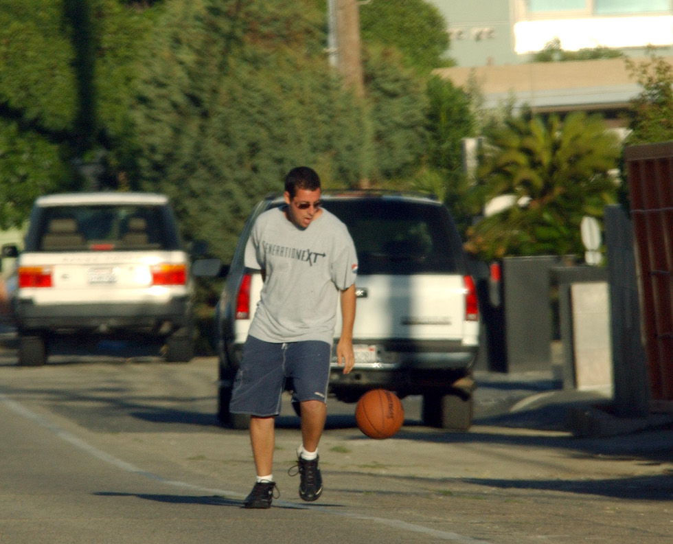Adam Sandler fotografato mentre gioca a basket in una strada di Los Angeles. (Bauer-Griffin/GC Images)