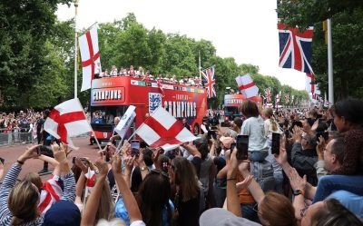 Nel pomeriggio del 29 luglio decine di migliaia di persone (65mila, secondo la squadra) hanno partecipato a Londra alla parata organizzata per festeggiare la vittoria dell’Inghilterra agli Europei femminili di calcio. Come si fa in questi casi le giocatrici e l’allenatrice (l’olandese Sarina Wiegman, alla sua terza vittoria consecutiva agli Europei) hanno sfilato su un bus scoperto lungo l’ampio viale noto come The Mall, nel centro della città, per poi arrivare su un palco vicino al Victoria Memorial, di fronte a Buckingham Palace, la residenza della famiglia reale.