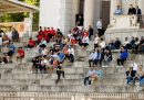 Il momento di tensione tra tifosi durante la partita (Gabriele Micalizzi, CESURA, per il Post)