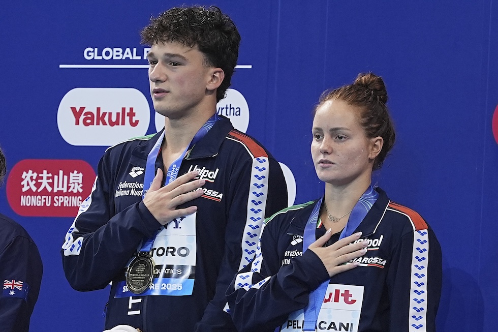 I tuffatori italiani Chiara Pellacani e Matteo Santoro hanno vinto la medaglia d’oro nei tuffi sincronizzati dal trampolino alto 3 metri ai Mondiali di nuoto di Singapore. È la sedicesima medaglia che l’Italia vince in questi Mondiali, la prima d’oro, dopo 11 argenti e 4 bronzi. Nei tre Mondiali precedenti Pellacani e Santoro avevano già vinto assieme due argenti e un bronzo, ma nella gara di mercoledì sono riusciti a battere anche la coppia australiana e quella cinese: una cosa piuttosto notevole, considerando l’abituale dominio della Cina nei tuffi (e il fatto che gli australiani erano campioni in carica).