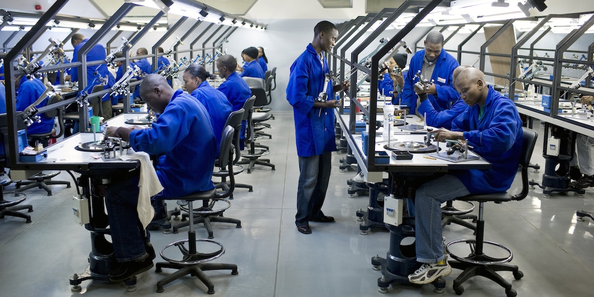 Addetti alla pulitura dei diamanti a Gaborone, in Botswana, nel 2008 (Getty/Per-Anders Pettersson)