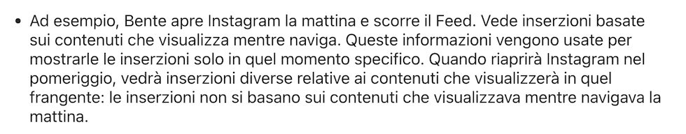 La differenza sostanziale con chi sceglie “inserzioni personalizzate” è quindi che gli annunci sono basati sui contenuti visualizzati durante una sola sessione sull’app, quella in cui si è in quel momento, anziché sulla cronologia complessiva delle attività dell’utente.