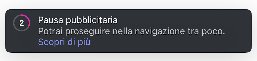Il messaggio che appare quando c’è una pubblicità che non si può saltare e lo schermo si blocca