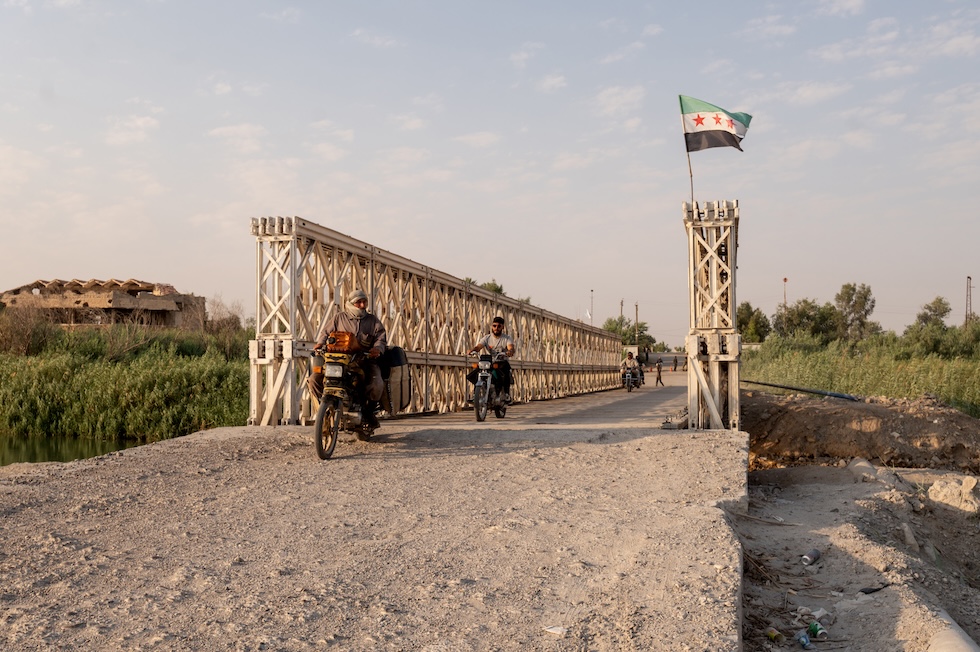 Il ponte di jisr al turabi sul fiume Eufrate, l’unico collegamento della Siria orientale tra il territorio controllato dalle milizie curde e il resto del paese, Deir Ezzor, 14 luglio 2025 (Gabriele Micalizzi, CESURA, per il Post)