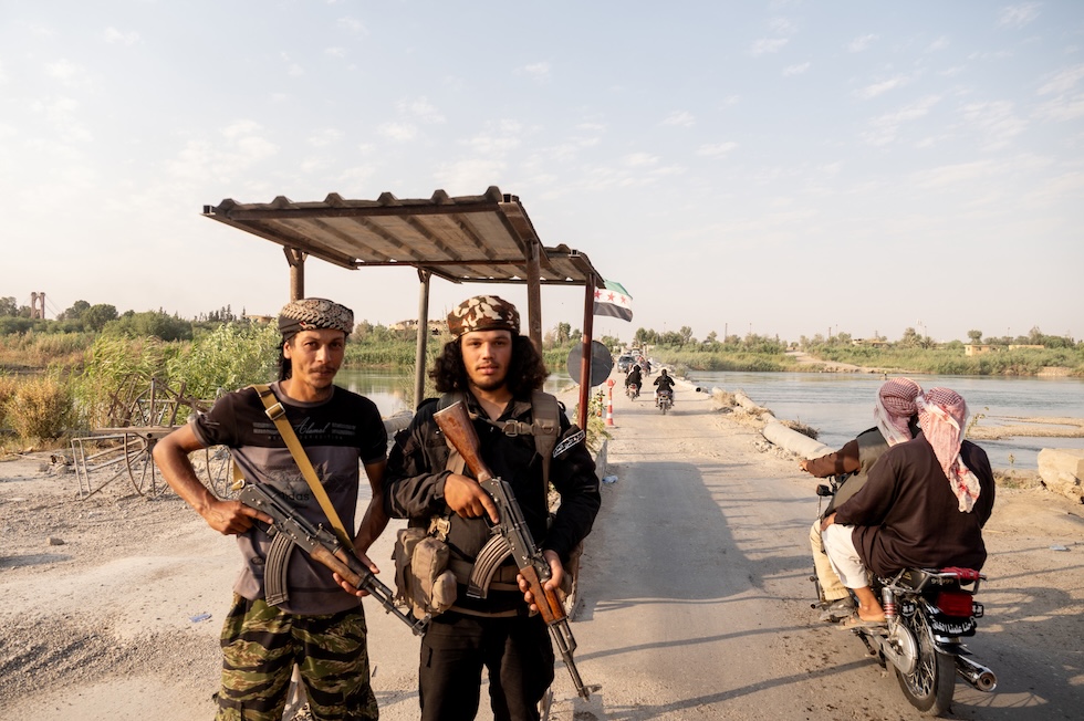 Una postazione di controllo del ponte di jisr al turabi sul fiume Eufrate, Deir Ezzor, 14 luglio 2025 (Gabriele Micalizzi, CESURA, per il Post)