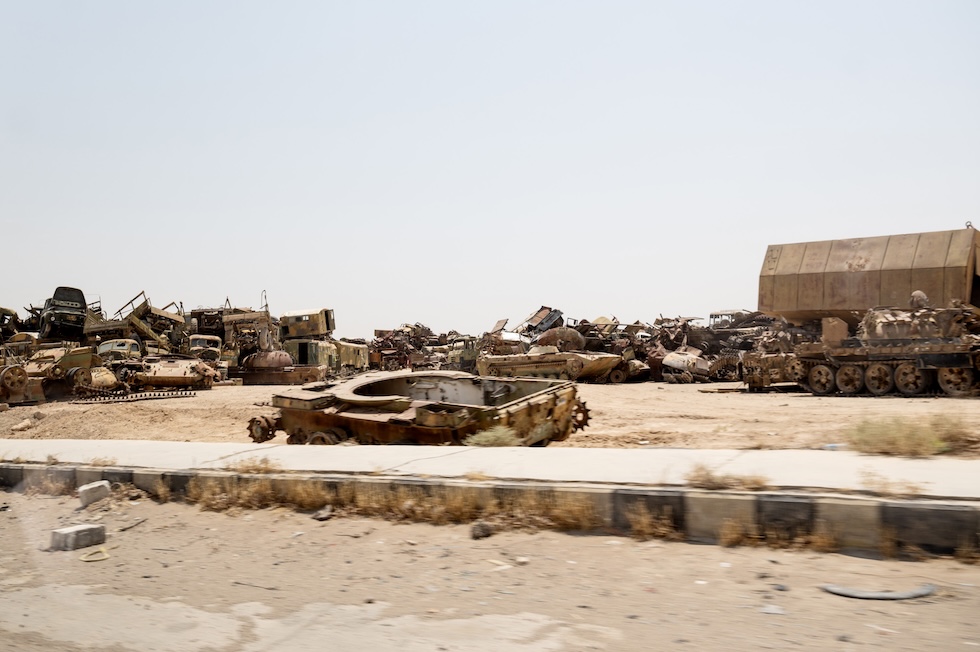 I carri armati distrutti all’entrata della città, Deir Ezzor, 14 luglio 2025 (Gabriele Micalizzi, CESURA, per il Post)