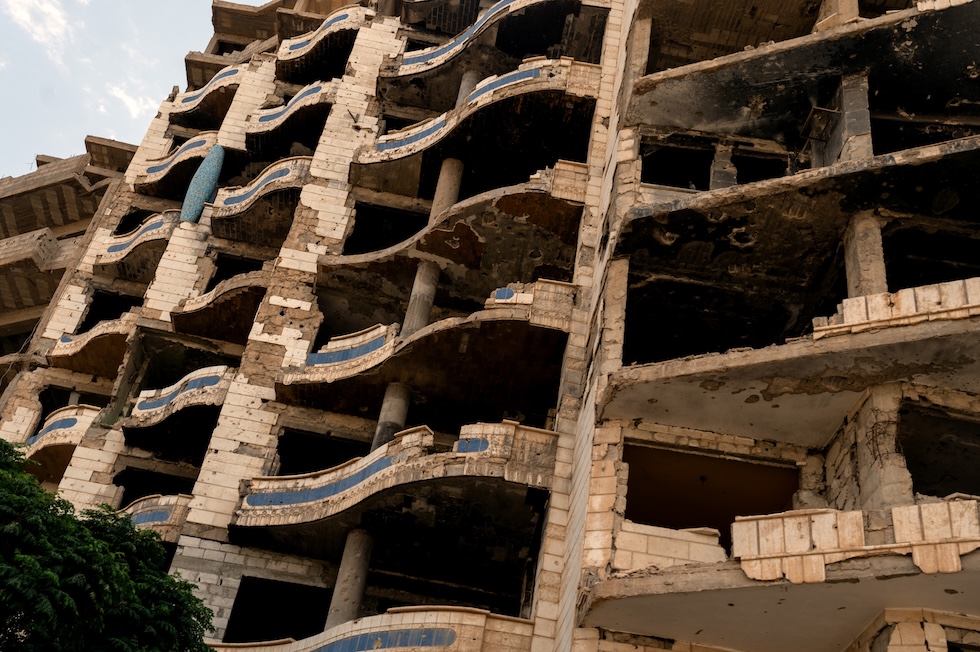 Uno dei posti migliori della città per prendere un caffè o un frullato di frutta ha un dehors, siepi finte e un sistema di nebulizzazione dell’acqua contro la calura ed è all’imbocco della discesa che porta al quartiere al Rashidiya, uno dei più colpiti dalle bombe. In primo piano i tavolini puliti e i camerieri che prendono ordinazioni e subito dietro sembra la Striscia di Gaza, ci sono un ponte e decine di palazzi distrutti.
